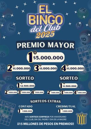 Además, habrá sorteos intermedios con premios que van desde $2.500.000 hasta $300.000, sin olvidar los sorteos sorpresa por el aniversario del club, el Día del Padre y el Día de la Madre.