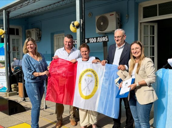 Entre los presentes, se destacó la participación del senador Alcides Calvo, acompañado por Bárbara Chivallero y el presidente comunal Marcelo Beltramo, quienes hicieron entrega de una placa conmemorativa en homenaje a los 100 años de la escuela, junto con la Declaración de Interés de la Cámara de Senadores de la Provincia de Santa Fe, reconociendo la trayectoria educativa, social y formativa de la institución. Además, se obsequiaron la Bandera de la Provincia de Santa Fe y un ejemplar de la nueva Constitución Provincial.