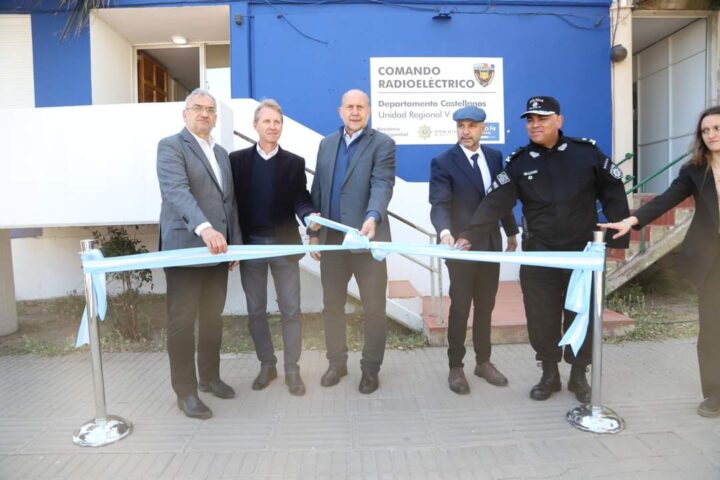 El gobernador Omar Perotti acompañado por el ministro de Seguridad provincial, Claudio Brilloni, y el senador provincial, Alcides Calvo, llegaron en la mañana de hoy, a la ciudad de Sunchales donde fueron recibidos por el Intendente, Gonzalo Toselli, para realizar el acto de inauguración del Comando Radioeléctrico que comienza a funcionar a partir de hoy en la ciudad; de la ceremonia participaron además, el jefe de la Unidad Regional V de Policía, Víctor Hugo Ribero, funcionarios de distintas áreas del ministerio de seguridad de la provincia de Santa Fe, representantes del Centro Comercial, Industrial y de la Producción de Sunchales, presidentes comunales de la región, medios de comunicación y público en general.