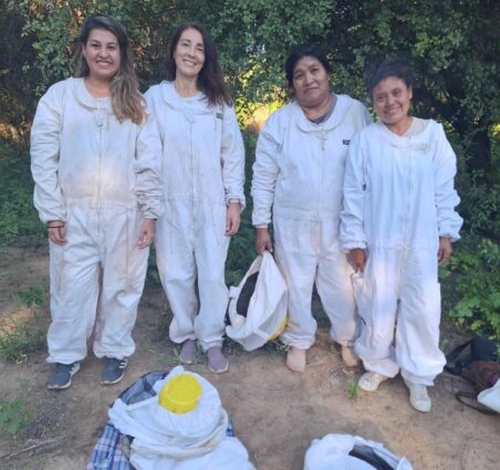 “Mujeres que Polinizan Futuro” se desarrolla en el monte santiagueño y tiene como eje la creación de un apiario comunitario y la formación técnica en apicultura sostenible, con el objetivo de generar ingresos genuinos, fortalecer el trabajo colectivo y cuidar el entorno natural. A través de talleres y prácticas productivas, las mujeres participan activamente en todas las etapas del proceso apícola.