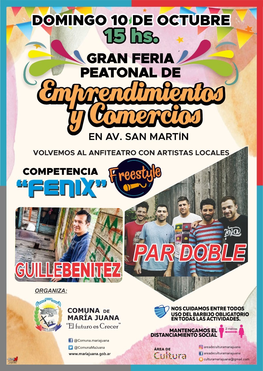 Con una plaza San Martín colmada, se desarrolló la jornada de la “Gran Feria Peatonal de Emprendimientos y Comercios”. A los emprendedores locales se sumaron 14 comercios que acompañaron abriendo sus puertas en el feriado. Se ubicaron también stands informativos de las distintas áreas de la Comuna de María Juana.Leer Más