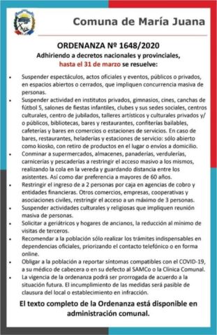 Amadeo Bazzoni, Presidente Comunal de María Juana, explicó el alcance de las medidas tomadas por el Comité de Crisis local ante el avance del Covid-19 en el país, de acuerdo a las medidas provinciales y nacionales. Escuchalo en la mañana de Comunicándonos con Mónica Barceló.Leer Más