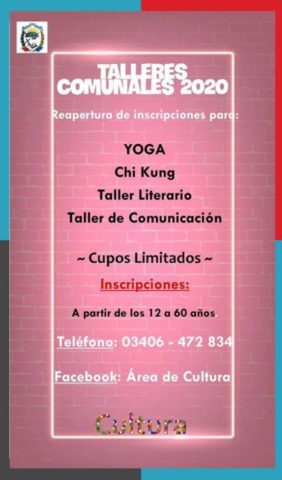 Desde el Área de Cultura, Malvina Marquese invitó a inscribirse en nuevos talleres comunales para personas con edad de entre 12 a 60 años. Escuchala en la mañana de Comunicándonos.Leer Más